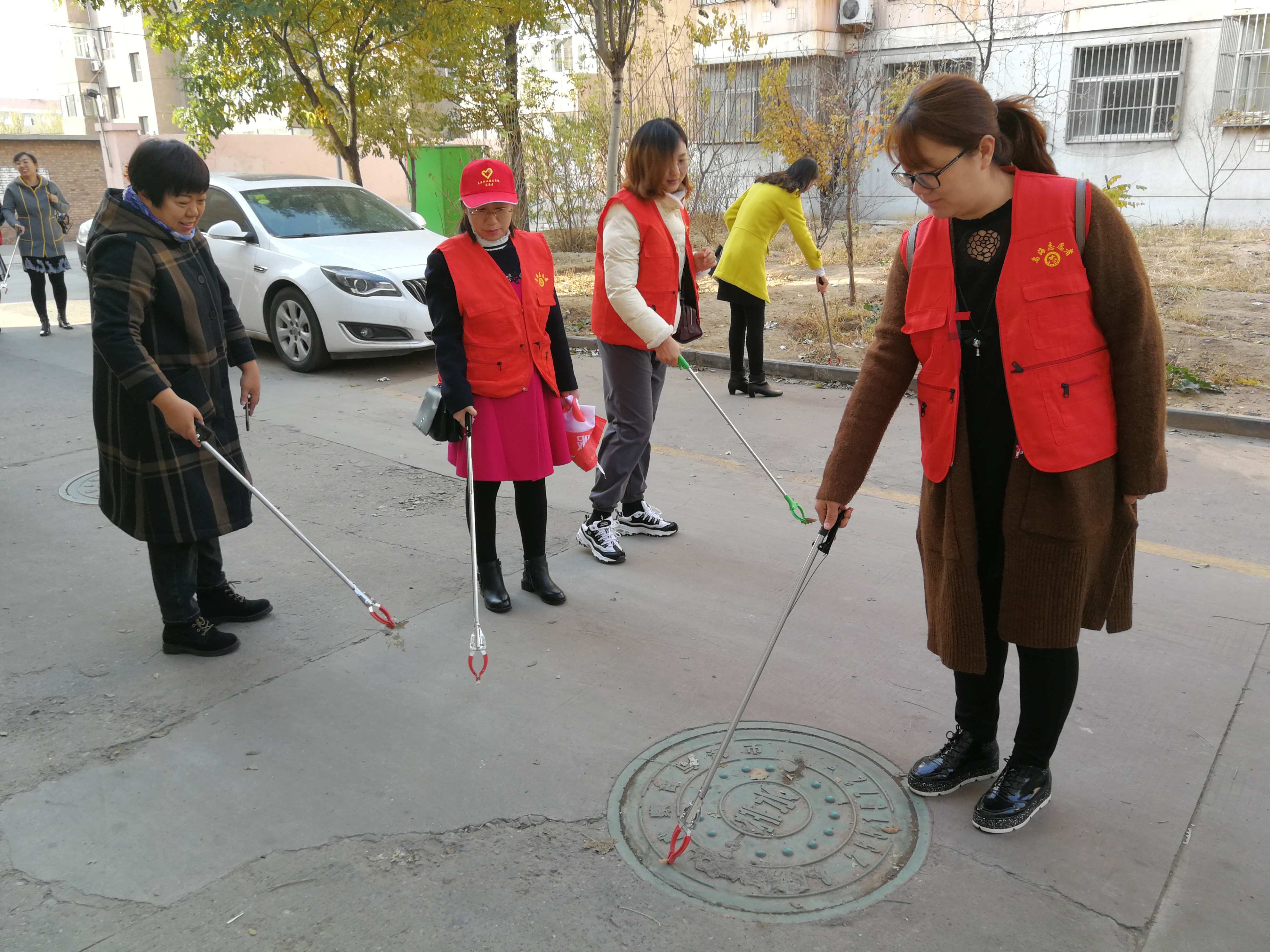 活動中,教師們拿著垃圾剪對小區道路兩側及草坪中的塑料袋、廢紙、煙頭、落葉等垃圾雜物進行撿拾和集中清理。教師們不放過任何一個衛生死角認真清掃,小區內隨處可見他們的身影。