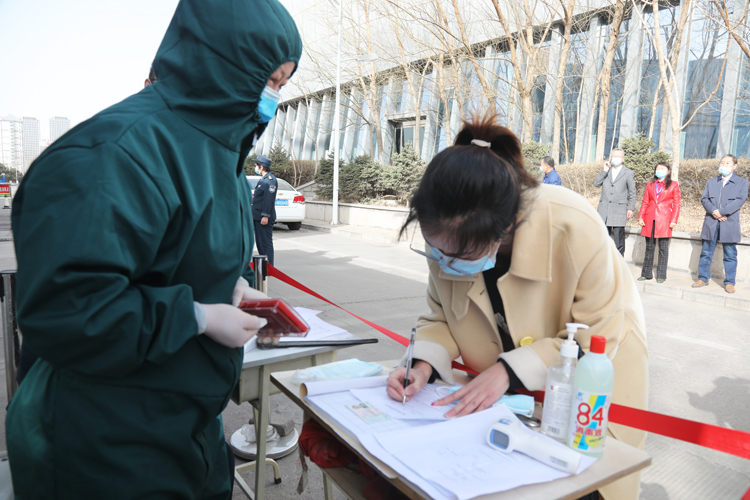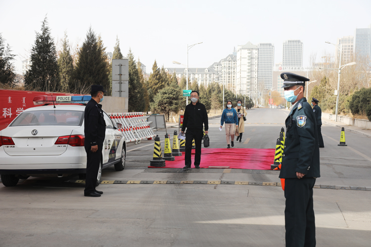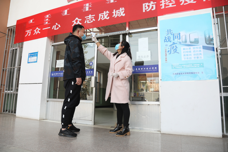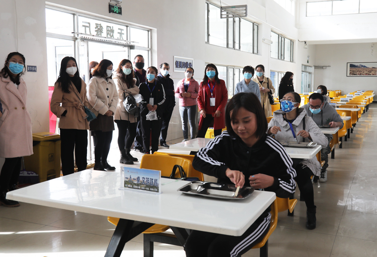 在校園主入口,3名“學生”持健康證明、學生證、身份證,在學院正門外沿規劃好的行人通道間隔1米集合,依次逐個進行行李消毒和踩踏消毒墊、入校登記和體溫首測。發現1名“學生”體溫高于37.3度并伴有呼吸道癥狀,醫護人員指導其填寫“承諾書”并做初步登記,帶領有異常癥狀“學生”到達“轉送專用車”(模擬負壓救護車)。再次測溫確認其有異樣后,通知“學生”班主任,通知學院的定點聯系醫院。定點醫院派出專車專人將其接到該院發熱門診進行處置。如果為確診病例,由我市新冠肺炎定點醫院收治。班主任立即上報系部,通知學生家長并說明情況,注意安撫家長情緒。系部配合有關工作單位開展疫情密切接觸人員排查工作。學院立即上報烏海市疫情應急防控工作領導小組及自治區教育廳。如果為疑似病例,由指定醫院收治進行醫學隔離觀察。在學生公寓前, 工作人員引導“學生”按標識有序排隊,依次逐個測溫、查驗身份,體溫正常者放行進入宿舍樓。在學生餐廳,“學生”按規定測溫、查驗身份后,由“入口”進入食堂,經洗手等消毒環節后,分流到指定窗口取餐。通過微信、支付寶、刷卡消費機等多種途徑付款。在餐廳用餐的“學生”落實一桌一人就餐制,分散落座并統一方向。打包帶走的“學生”,由“出口”有序離開食堂回宿舍就餐。整個演練過程緊張有序,各環節銜接緊湊。同時,通過模擬實戰檢驗《疫情應急預案》,及時發現了疫情防控工作中存在的問題和不足。