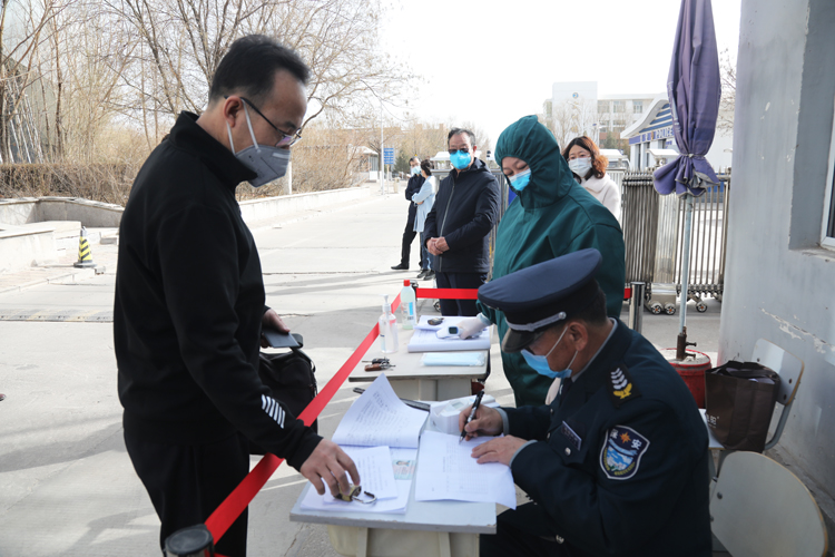 演練現場,化學工程系部分教師飾演學生,先后在校園主入口、學生公寓、學生餐廳等重點區域開展了“返校入校報到”“日常進入公寓”“用餐”等在校學習生活場景模擬,并針對發現體溫異常時的應急處置重點環節進行了模擬實戰。