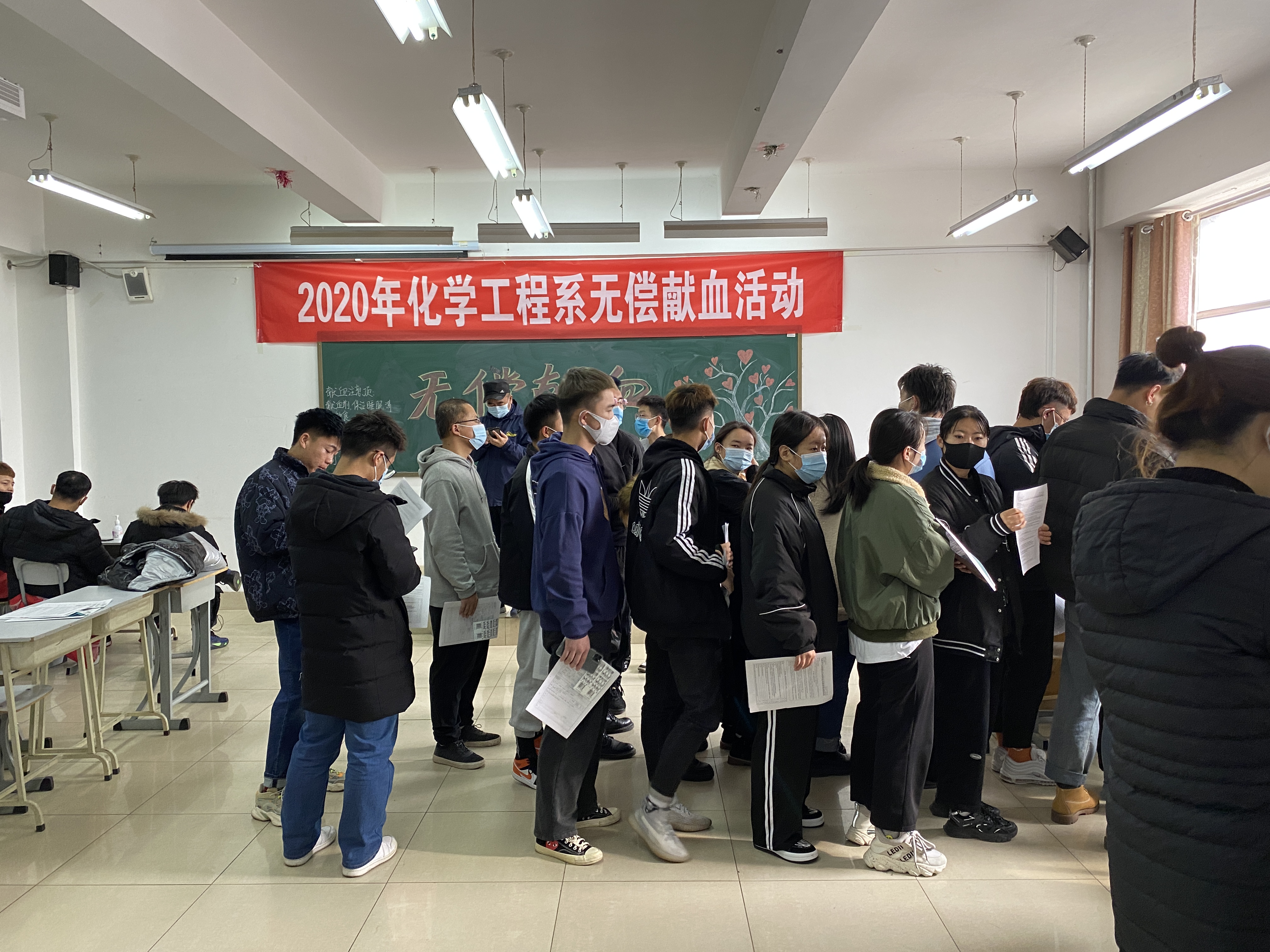 化學工程系教師帶領學生會成員提前完成場地布置,組織系部志愿者協助醫生安放醫療器械和布置桌椅,并負責維持現場秩序。根據要求,獻血者首先要進行體重、血壓、血型等醫學指標的檢測,各項指標合格后才有能獻血。活動伊始,學生們積極領表、排隊參加了獻血。