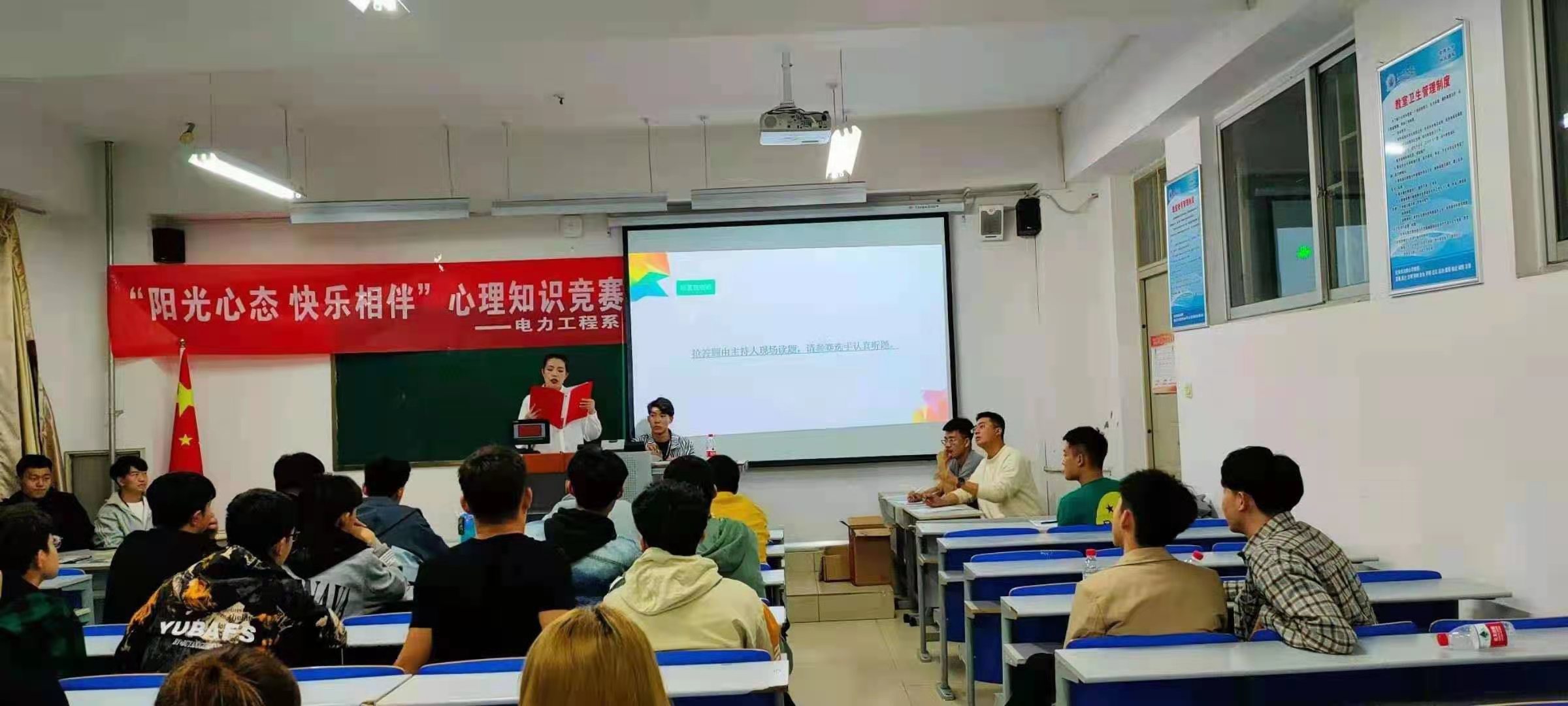 為進一步提高學生心理素質水平,促進學生身心健康發展,同時宣傳和普及心理健康知識,深入開展心理健康教育,電力工程系于4月5日下午開展了以“陽光心態,快樂相伴”為主題的心理健康知識競賽。