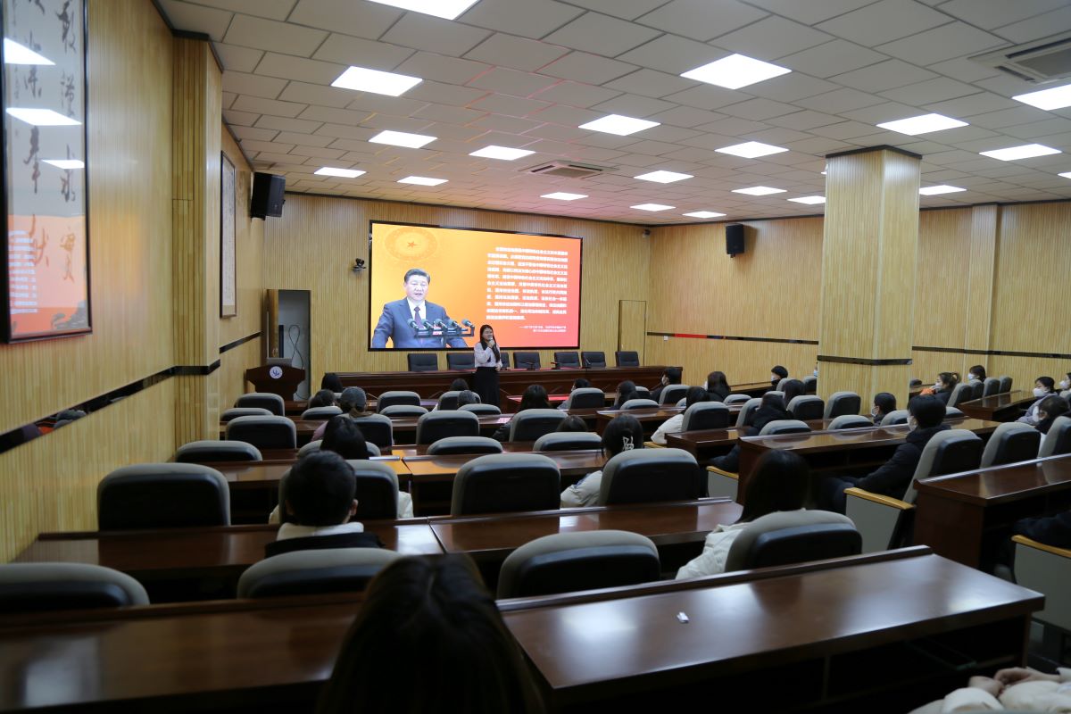 我院思想政治理論課教師王璐帶領學生們學習了習近平總書記圍繞全面依法治國向哪里走、走什么路作出的深刻論述,細致介紹了習近平法治思想的形成和確立過程,主要結合習近平總書記在中央全面依法治國工作會議上的重要講話,以習近平法治思想的主要內容為重點,從習近平法治思想的主要內容、習近平法治思想的鮮明特征、習近平法治思想的重大意義、如何理解習近平法治思想的精神實質等四個方面系統全面的解讀了習近平法治思想,讓在場學生對習近平法治思想有了更深的認識。