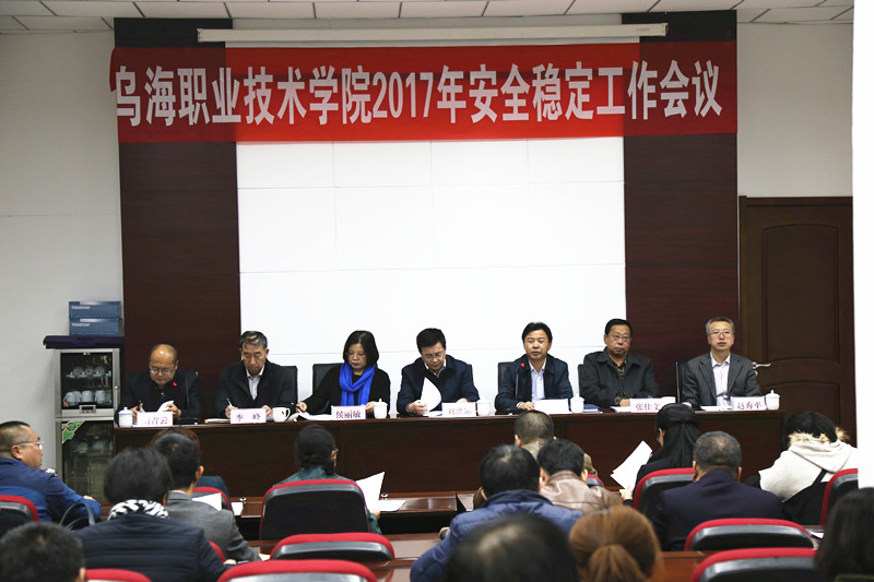 近日,烏海職業技術學院2017年安全穩定工作會議召開。學院黨委書記劉洪運,黨委副書記、院長牟占軍,黨委副書記、紀委書記侯麗敏,黨委委員、副院長張佳文、李峰、趙秀平出席會議并在主席臺就座。全院各黨總支書記,各基層單位正副職及安全管理員參加會議。會議由牟占軍主持。