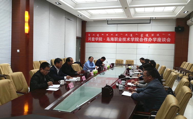 在簽約前,雙方進行了會談。牟占軍介紹了我院的辦學條件、專業建設、人才培養和實訓基地建設等基本情況,并談了與河套學院合作試辦本科職業教育的想法和思路。張高明介紹了河套學院的基本狀況和發展目標等情況,并就學科建設、師資隊伍建設、實訓條件建設等方面的思路、經驗與牟占軍交換了意見。同時希望兩校在師資隊伍共享、校企合作等方面進一步深入合作。雙方還就合作專業制定培養方案、雙師隊伍建設、校企合作等合作辦學的具體事宜交換了意見。