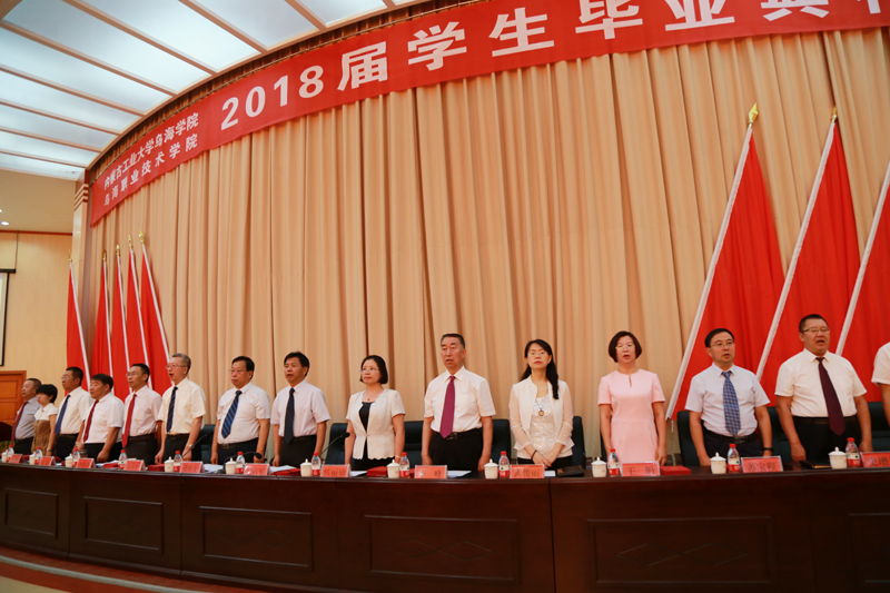 畢業典禮在激昂雄壯的國歌聲中拉開序幕。