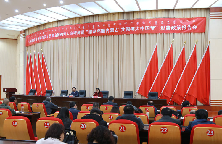 11月22日下午,烏海職業(yè)技術(shù)學(xué)院召開學(xué)習(xí)貫徹全國教育大會(huì)精神暨“建設(shè)亮麗內(nèi)蒙古 共圓偉大中國夢(mèng)”形勢(shì)政策報(bào)告會(huì)。學(xué)院黨委副書記、院長(zhǎng)牟占軍以《學(xué)習(xí)貫徹全國教育大會(huì)精神 推動(dòng)我院教育教學(xué)高質(zhì)量發(fā)展》為題作了精彩的報(bào)告。學(xué)院領(lǐng)導(dǎo)班子成員、全院教職員工及部分學(xué)生代表聆聽報(bào)告。報(bào)告會(huì)由學(xué)院黨委副書記、紀(jì)委書記、宣傳部長(zhǎng)侯麗敏主持。